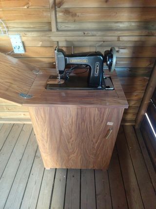Se vende máquina de coser antigua, con su mueble de madera. Marca Singer. Con bastante uso pero funcional. Las medidas con el mueble cerrado son 57x42x78 cm. - Máquina de coser de metal. - Mueble de madera con compartimentos.