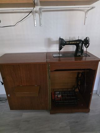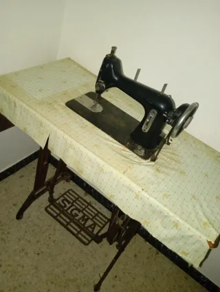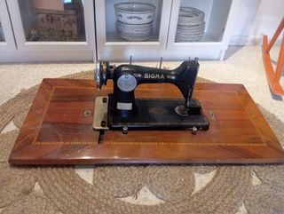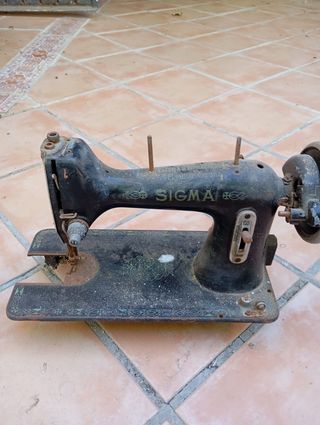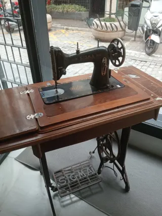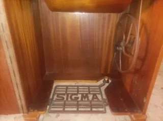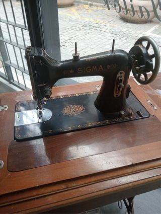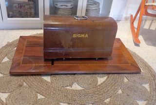 Máquina de coser antigua de la marca SIGMA, un clásico para tu hogar o taller. - Diseño vintage. - Base de madera. - Detalles metálicos.
