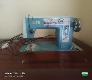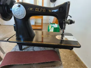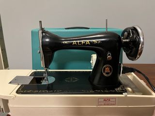 Máquina de coser Alfa muy antigua, en estado de funcionamiento. - Diseño clásico en color negro y detalles en metal. - Incluye su base pedal eléctrico. y maleta...