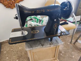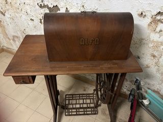 Máquina de coser antigua de la marca Alpha, con funcionamiento a pedal. Ideal para coleccionistas o como pieza decorativa. Me dijeron que podía arreglarse, yo ya la compré sin funcionar a este mismo precio. - Diseño clásico en color negro. - Incluye su mueble de madera. - No funciona.