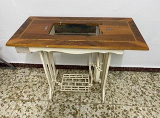 Mesa de máquina de coser antigua, una pieza con encanto para tu hogar. - Fabricada en madera y metal. - Diseño clásico y robusto.