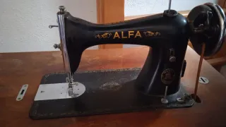 Máquina de coser antigua de la marca Alfa, fabricada en Eibar, España. Un modelo clásico con un diseño distintivo... Se vende con pedal y maleta.. hace tiempo que no se cose pero la dejé funcionando.... Las fotos no las puedo poner mejor porque las tengo en un trastero .. y no hay mucha luz pero la máquina está muy bien... - Cuerpo metálico. - Detalle de logo circular con laureles.