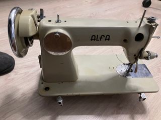 Máquina de coser clásica de la marca Alfa. Un modelo antiguo con un diseño distintivo. Funciona perfectamente. - Cuerpo de metal negro. - Detalles dorados en la base. - Incluye el logo MARCA ALFA REGISTRADA.