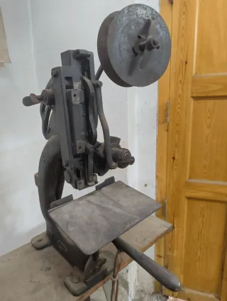 Máquina cosedora de hilo metalico, imprenta antigua ,alemana a pedal,....funciona con engrase para coser talonarios ocomo pieza decorativa. Medidas...1'50 altura, 92 ancho y 65+- profundidad No hago envios