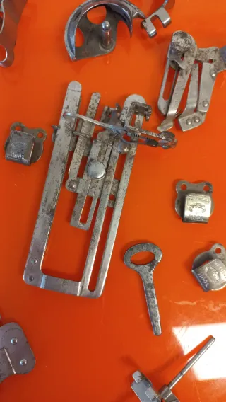 Conjunto de varias piezas metálicas para máquinas de coser antiguas. Son recambios y accesorios. - Variedad de componentes. - Fabricadas en metal.