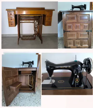 Preciosa máquina de coser Alfa, antigua y con una estética clásica. Ideal para coleccionistas o amantes de las antigüedades. - Máquina de coser Alfa en perfecto estado. - Estructura de madera robusta y bien conservada. - Pieza única para decoración o uso.