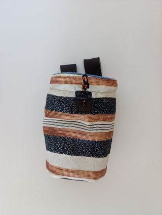 Magneseras caseras para la escalada de la marca "Majalula". Hechas con máquina de coser con doble capa, la de dentro suave tela de pirineo. La base es de cuero sintético con una abertura de 20cm de diámetro. Con cierre de cordón ajustable. Se aceptan magneseras por encargo con otras variedades de telas. Hechas en Tenerife, para encargos a península consulta por mensaje.
