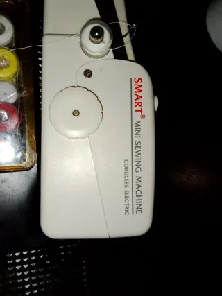 Máquina de coser SMART, modelo mini y eléctrica. - Compacta y portátil. - Incluye kit de costura con hilos de colores.