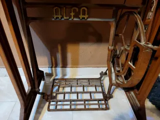Máquina de coser ALFA antigua a pedal, original y en perfecto funcionamiento. ✔ Funciona correctamente ✔ Sistema a pedal SIN electricidad, funciona únicamente con el movimiento del pie ✔ Incluye libro/manual original ✔ Incluye piezas y accesorios originales ✔ Incluye tapa para cubrir la máquina (la llave no funciona) ✔ Serigrafía y placa originales conservadas Mueble y estructura sólidos. Ideal tanto para uso real, decoración vintage o coleccionistas. Se puede probar sin compromiso. Estado: muy bueno para su antigüedad