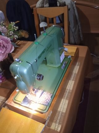 Máquina de coser Refrey Transforma de color verde. - Incluye pedal. - Diseño clásico.máquina eléctrica refrey transforma 427, hecha en España. Recogida en mano y envío certificado. WhatsApp 636080612