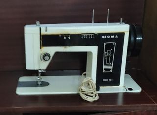 Máquina de coser Sigma, modelo 161, con pedal eléctrico. Se encuentra en buen estado, aunque muestra señales de uso. - Modelo: Sigma 161 - Incluye pedal eléctrico - Antigua, con señales de uso.