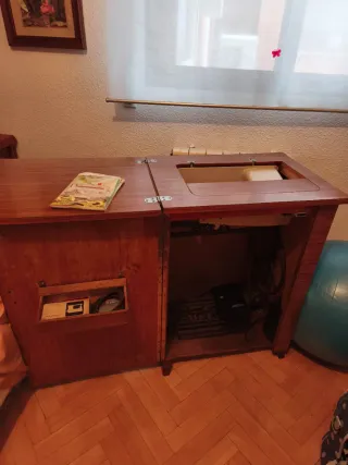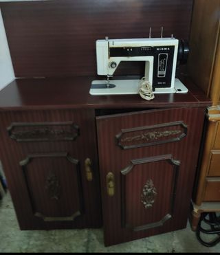 Mueble de madera para máquina de coser SIGMA. Con un diseño clásico con pedal no eléctrica. hay que hacerle algunos ajustes - Puerta abatible con cerradura. - Espacio interior para guardar la máquina y accesorios. - negociables