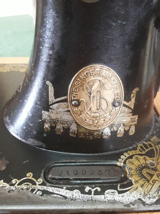 Preciosa máquina de coser Singer antigua, en buen estado. - Incluye maletín de transporte. - Número de serie V1002378. - Con motor eléctrico. Decorativa y útil. - Ideal para coleccionistas o amantes de la costura.