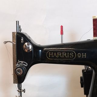 Máquina de Coser Harris Domestic: una antigua máquina de coser eléctrica, fabricada en Inglaterra por la Marca Harris Domestic, modelo 9H, completa de pedal para activarla y de tapa de madera. Buenas condiciones de conservación, funciona correctamente, presenta señales de uso y paso del tiempo. Medidas con tapadera: ancho 47 cm, fondo 25 cm, alto 31 cm. Peso 14 Kg. Código 154173