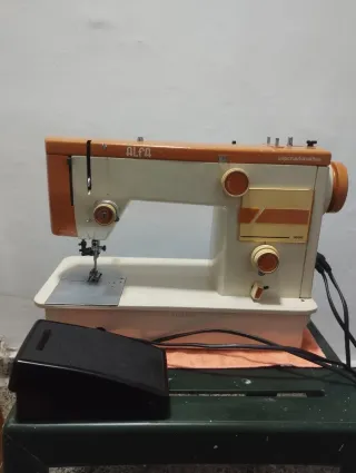 Preciosa máquina de coser eléctrica de la marca Alfa, en estupendo estado. Ideal para costura y arreglos, pudiendo hacer diseños (dibujos) bordados. Viene con su maleta para llevar en mano y una caja donde dentro contiene - 6 discos de bordado. - 1 juego de patillas para hacer ojales. - Variedad de carretes de colores. - 2 canillas. - Minicaja de herramientas. Además tiene cable y pedal original. Junto libro de instrucciones.