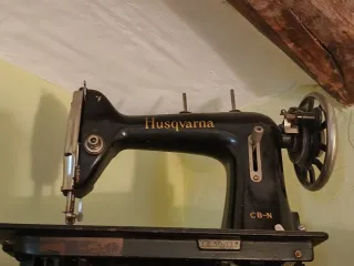 Máquina de coser clásica de la marca Husqvarna, modelo CB-N. - Diseño vintage en color negro. - Detalles dorados de la marca. - Incluye volante lateral. No funciona pero se puede restaurar