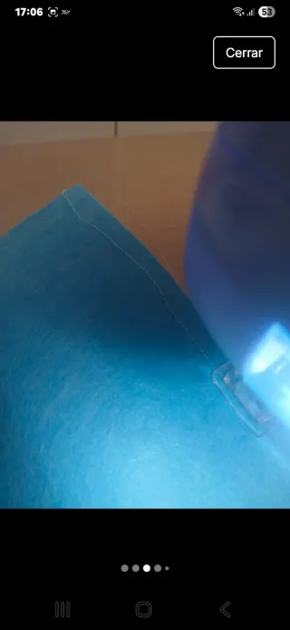 Máquina de coser para niñ@s. - Tela con lunares de colores: rosa, morado, negro, azul y verde. - Protector de plástico transparente sobre la aguja. Mi hija solo la ha usado una vez, está totalmente nueva