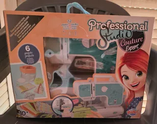 Máquina de coser infantil Buki Professional Studio Couture, ideal para iniciarse en la costura. Ojo, aunque es para niños cose de verdad y a gran velocidad. Por eso lleva un protector en la zona de la aguja para que no haya peligro. Está impecable. - Incluye instrucciones de proyectos para realizar. - Tensión numerada para un control preciso. - A partir de 8 años. - Telas incluidas.
