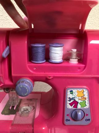 En buen estado y funcionando. Se vende con lo que aparece en las fotos. Es un juguete realista diseñado para que los niños se inicien en el mundo de la costura y el diseño de moda. Fácil de usar. Ya con las pilas incorporadas.