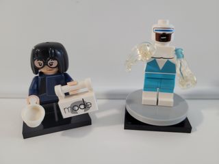 Minifiguras LEGO de Disney de la serie 71024. Se incluyen dos figuras: Edna Moda y Frozono. Sólo abierto para comprobar su contenido. COMBINAMOS ENVÍOS!!!¡ Las figuras están en buen estado. - Edna Moda viene con su máquina de coser y una taza. - Frozono tiene sus brazos transparentes característicos. - ¡Perfectas para coleccionistas!