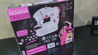 Máquina de coser infantil de la marca Fashion Passion, ideal para iniciarse en la costura. Funciona a pilas. - Incluye accesorios como hilos y bobinas. - Incluye pedal. - Diseño divertido y colorido.