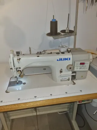 Se vende máquina de coser Juki DDL-8700 en muy buen estado,con dos años de uso durante estudios de moda. Desde entonces guardada en su caja. Funciona perfectamente. La mesa tiene 3 pequeños cortes en el lado derecho (en la foto) que no interfieren de ninguna manera en los tejidos a la hora de coser por estar a la derecha de la máquina. El resto de la mesa está en perfecto estado.