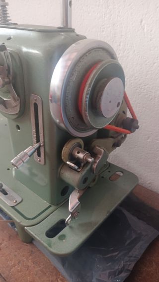 Máquina de coser Refrey, modelo industrial, ideal para trabajos de costura. - Color verde. - Incluye accesorios. - Bobina de hilo.