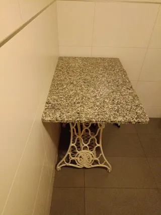 Mesa de piedra con base de máquina de coser Singer