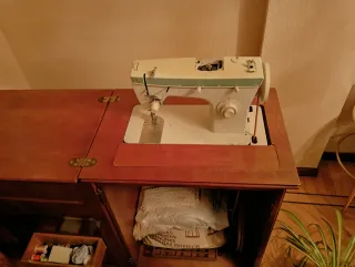 Máquina de coser Singer, un clásico para tus proyectos de costura. - Diseño funcional y elegante. - Ideal para trabajos de costura en casa.