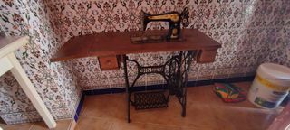 Máquina de coser Singer antigua con su mueble original. Se cambió el motor original por otro nuevo ( ver foto). Incluye pedal eléctico y algunos accesorios. - Diseño vintage. - Ideal para coleccionistas o amantes de lo retro. Venta en persona en Zarzaquemada (Leganés- Madrid) .