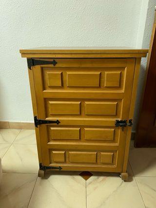 Máquina de coser Singer clásica, ideal para trabajos de costura. Se presenta integrada en un mueble de madera con un diseño de líneas sencillas. - Diseño vintage. - Mueble con puerta. - Acabado en imitación madera. El mueble está roto. La máquina funciona.
