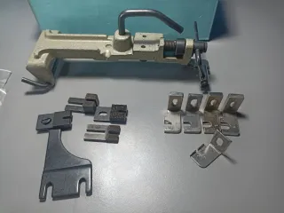 Herramienta para colocar botones de anilla en máquinas de coser. Botones válido para la mayoría de las marcas de máquinas de coser botones, brother, juki, singer, Lewis, etc - Incluye pinza principal. - Se acompaña de varios accesorios. - Fabricada en metal.