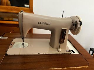 Maquina de coser marca Singer, con su mueble original. En muy buen estado. Funciona a pedal eléctrico y manual.