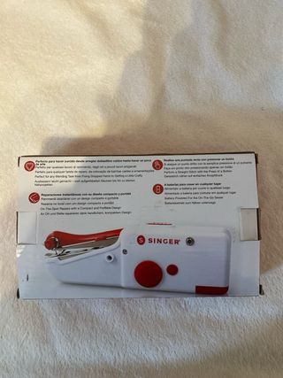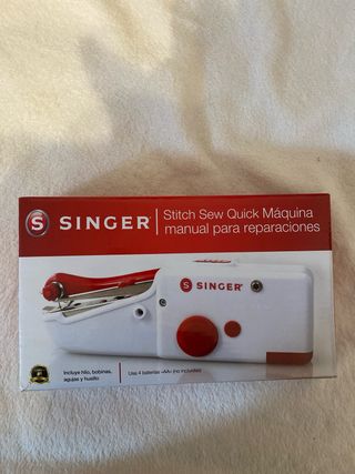 Máquina de coser manual Singer Stitch Sew Quick, ideal para reparaciones rápida. - Incluye hilo, bobinas, agujas y husillo. - Utiliza 4 baterías AA (incluidas). Marca alemana, no es de un producto chino!!