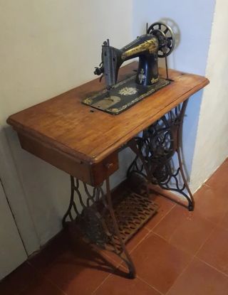 Máquina de coser Singer de 1873 (según número de serie). Cuidada y en funcionamiento, sólo le falta una puesta a punto. Viene con sus accesorios de mantenimiento. Se escuchan ofertas, trato en mano (a ser posible, para envío pesa mucho)
