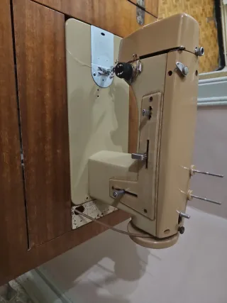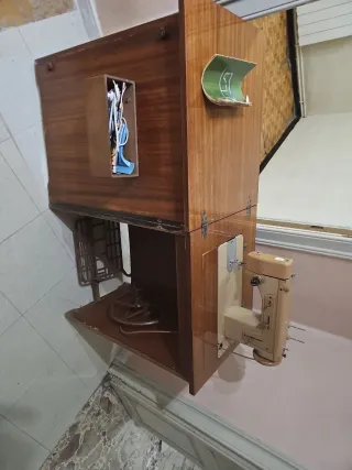 Funciona perfectamente y está bien conservada. El mueble está deteriorado como se aprecia en las fotos. Mecanismo de pedal. Dispone del logo de “singer sewing machine” Conserva el libro de instrucciones y la caja con sus accesorios. Retro Vintage coleccionista nostalgia, ideal para coleccionistas o para quienes aprecian la maquinaria vintage.