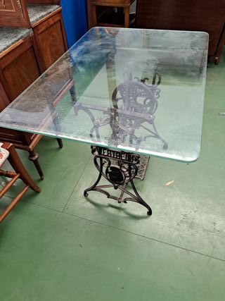Máquina de coser Alfa, ideal para decoración con un cristal o madera. - Estructura principal de metal. - Base y detalles en madera.