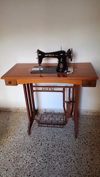 Máquina de coser antigua ALFA Mod. 63, completa y en muy buen estado para su antigüedad. Incluye mueble original de madera, pedal de pie, cajones laterales y tapa superior con el logo ALFA. Funciona el mecanismo de giro y los pedales, y se conserva con todas sus piezas principales. Ideal para coleccionistas, decoración vintage, restauradores, o para quien quiera una máquina robusta y de calidad clásica. Incluye además el manual de instrucciones original. Perfecta como pieza funcional o decorativa. 📌 Características: • Marca: ALFA (España) • Modelo: 63 • Mueble de madera maciza original • Pedal y estructura de hierro fundido