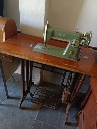Máquina de coser Alfa con mesa de pedal. Funciona perfectamente. Está en perfectas condiciones. Negociable.