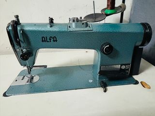 Máquina de coser profesional ALFA 157, en perfecto estado de funcionamiento. Instalada en mesa original. Sólo venta en persona.