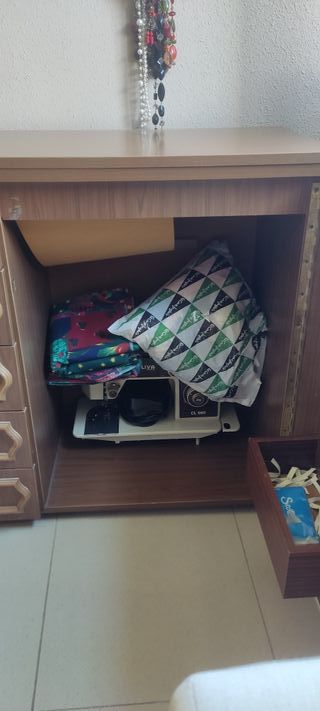 Se vende maquina de coser con mueble incluido. Funciona .En buen estado con sus mantenimientos. 57 cm ancho. 42cm fondo. 77cm alto.