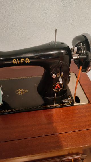 Maquina de coser de la marca Alfa, en perfecto estado y funcionando a la perfección. Solo necesita el mantenimiento para engrasar ya que lleva mucho tiempo sin utilizar, de ahí el precio.