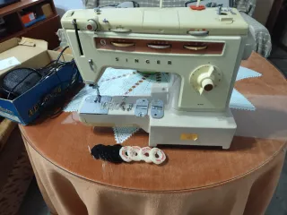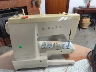 Máquina de coser Singer en color crema, un modelo clásico y funcional. - Diseño vintage. - Incluye accesorios y manual. - Ideal para coleccionistas o aficionados a la costura. Lo ha dado prácticamente todo, ideal para piezas o reparar. Aún que funciona y el pie de la máquina es nuevo que también iría con la máquina