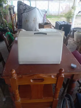 Máquina de coser Werheim en color blanco y beige. Funciona correctamente y tengo los pedales y todo La palanca no baja, y no recogía bien el hilo y los plásticos algunos hay que unirlos mejor - Diseño compacto y funcional. - Incluye su funda protectora.