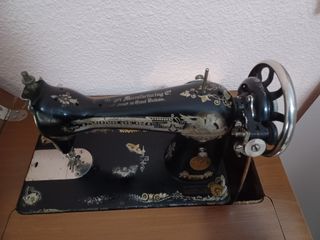 Preciosa máquina de coser antigua, con más de 80 años de historia. Ideal para coleccionistas o amantes de artículos vintage. - Se encuentra en buen estado para su edad, aunque presenta señales de uso. - La máquina está hecha de metal y madera, con un diseño clásico y elegante. - Perfecta para decoración o restauración.