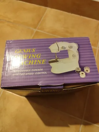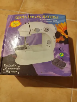 Máquina de coser portátil Genius, ideal para pequeños arreglos y proyectos. - Con doble hilo. - Dos velocidades de costura. - Diseño compacto y ligero. - Incluye pedal. - Anunciada en TV.