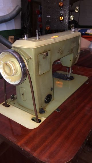Máquina de coser Alfa antigua con su mesa. Funciona perfectamente menos sobrehilar.