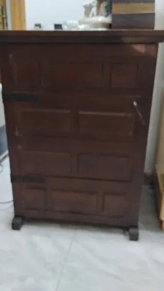 Mueble antiguo con diseño clásico. - Estructura de madera robusta. - Acabado en tono oscuro. - Patas decorativas.