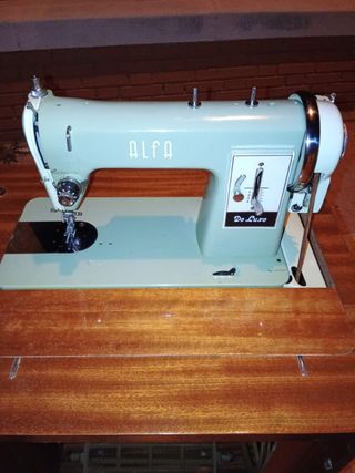 Máquina de coser Alfa Alfamatic 109 en color azul claro y blanco. - Incluye caja roja, conteniendo accesorios y agujas. - Manual de instrucciones HE AQUI SU ALFA. - Mueble de madera con compartimentos. - Lleva cerca de 20 años sin usarse pero se ha revisado y lubricado el mecanismo, funcionando todos los mandos y la bombilla. Durante estos años se ha usado como mesa para portar fotos y no se ha dejado ensuciar. - Tiene un poco de desperfecto el mueble por la parte trasera y el plástico embellecedor de la zona de mandos (sin importancia). - La máquina ha tenido poco uso y a nivel particular, no profesional. 53 euros.