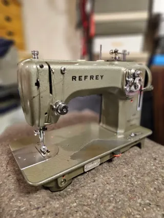 Máquina de coser de la marca Refrey, un clásico para el hogar. Modelo 922,industrial con motor eléctrico - Diseño robusto y duradero. - Color verde menta. - Necesita una puesta a punto porque hace tiempo que no se usa